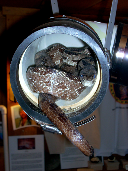 Now check out Hayward the Gray ratsnake resting in one of the Ratsnake Skyway tubes–isn’t he a beautiful snake!