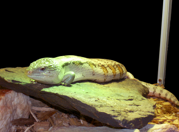 The first one is of Indi the Blue Tongue Skink basking under her new full spectrum sun lamp that was donated by Nature Center volunteer Amy Lord–THANK YOU Amy!  I cannot think of a better way to spend the winter than flat out like a lizard basking.