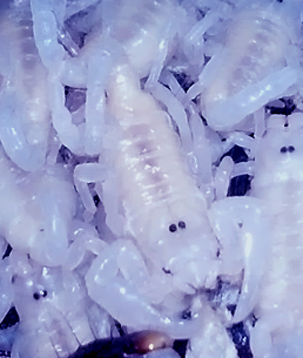 There are at least 14 babies and she may not be finished giving birth–they can have dozens of offspring! Mama will take care of them for several weeks by killing insects, ripping them into tiny pieces, and then passing the pieces back to the babies on her back–so cool! After a few weeks the babies will start turning darker and their exoskeletons will harden protecting them from drying out and giving them some protection from predators. Then they will begin to venture out on their own to begin their life as an important predator on small insects in their native habitat of the jungles of Africa. In the nature center they rely on me to feed them home grown crickets, meal worms and roaches.