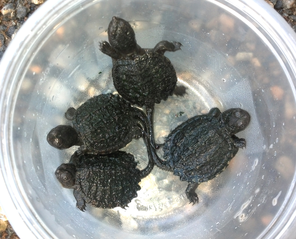 A few weeks ago I released some cute little baby snapping turtles into a pond–take a look!