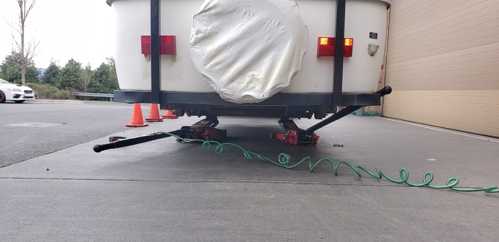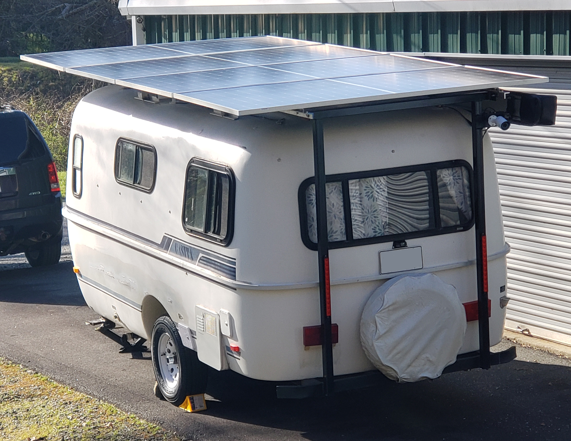 We also took some time to reseal all the existing rivets/bolts on the roof of the RV. As all these points will soon be under the solar array, we decided to seal everything up very well so we will not need to remove modules to seal up a roof leak. You can see two of these sealed rivet points in the above photo – they are curing under the paper/painter’s tape.