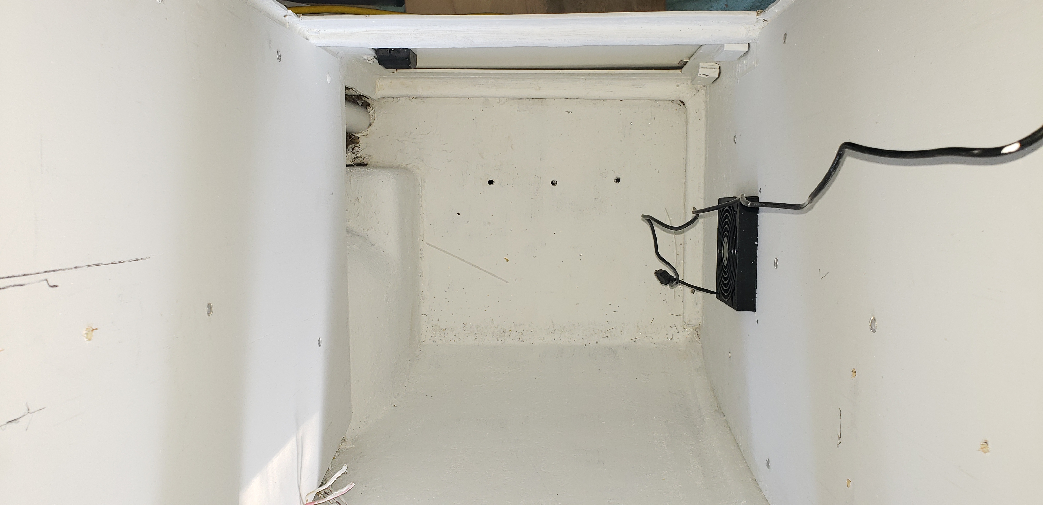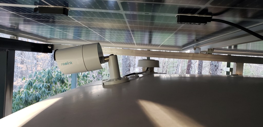 This is the port-mounted camera. Behind it note the LAN cable leading back to the marine-grade cable entry port (out of view). Currently, this outdoor-rated cable is affixed to the surface of the PoD with adhesive cable organizers but soon, this exposed wire will be up out of the way and in a more secure location following the solar array frame rail.