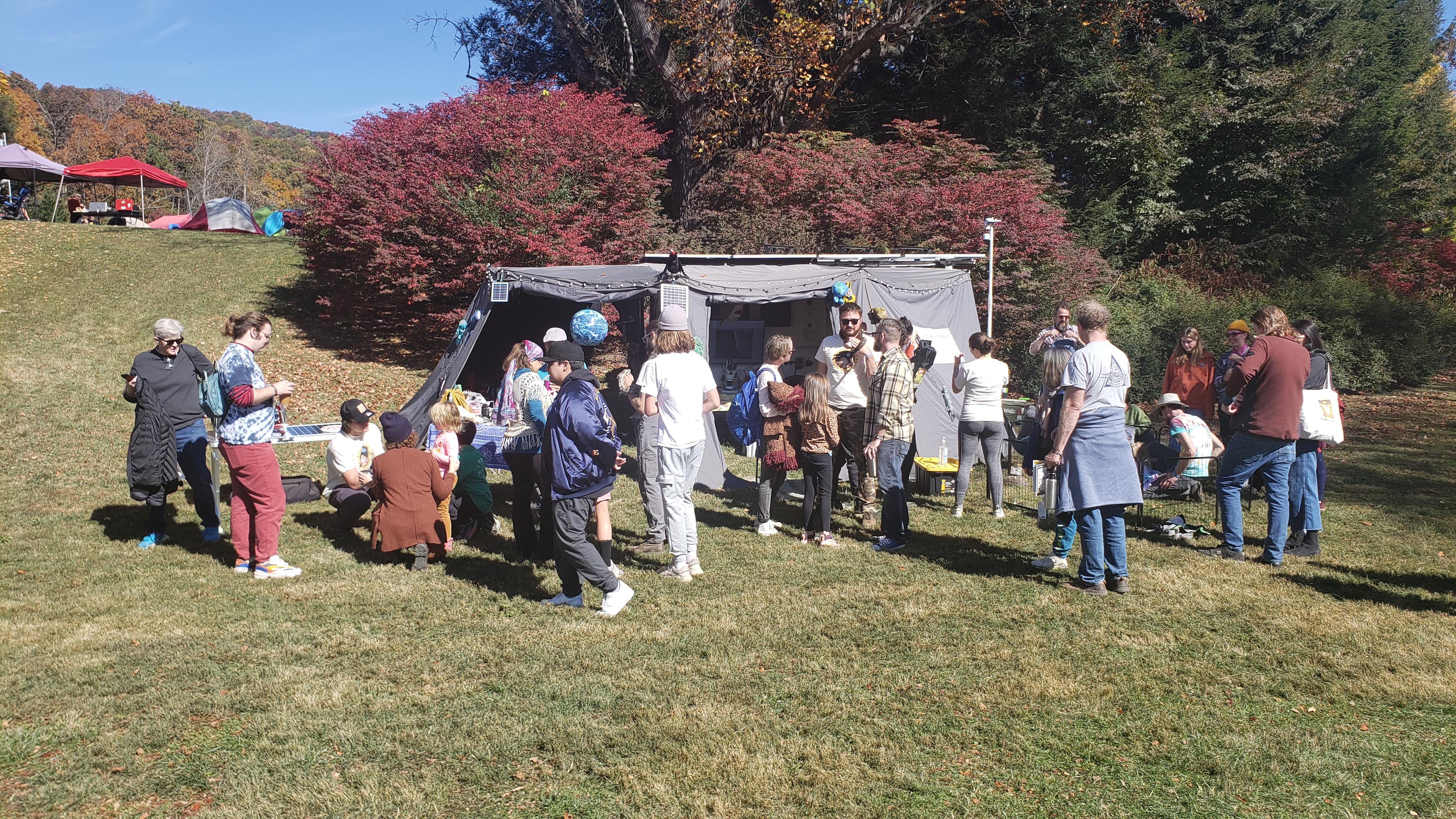 This was our first event using the PoD’s Overland Vehicle Systems awning sidewalls and they worked perfectly to keep the bright sun off the microscope station and provide some nice shade/shelter when needed.