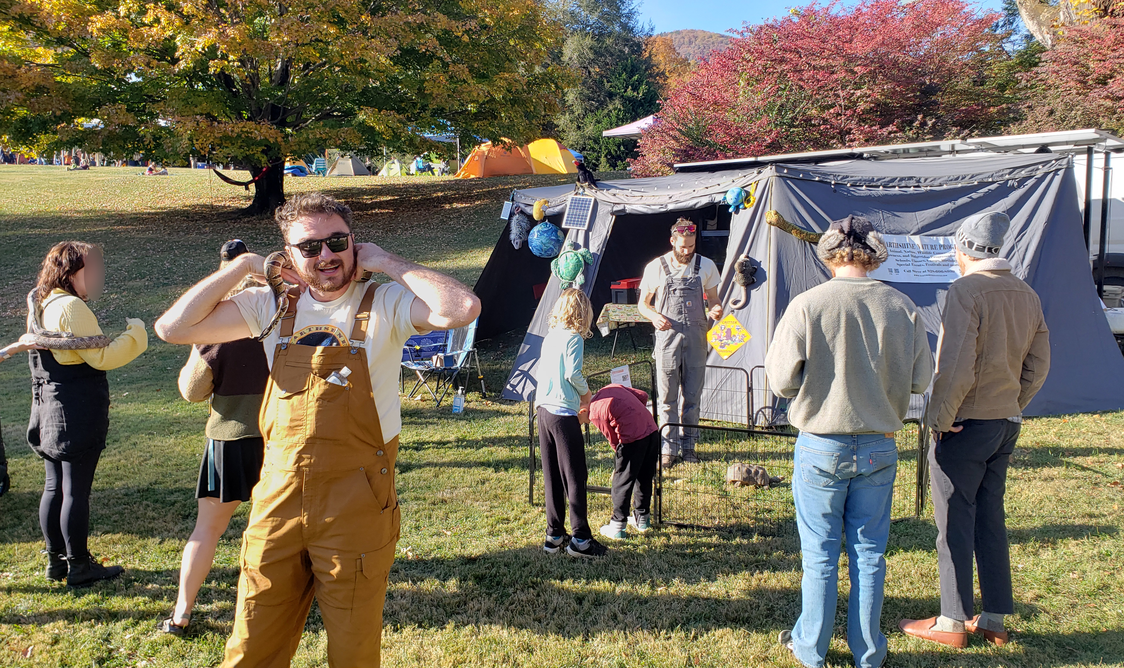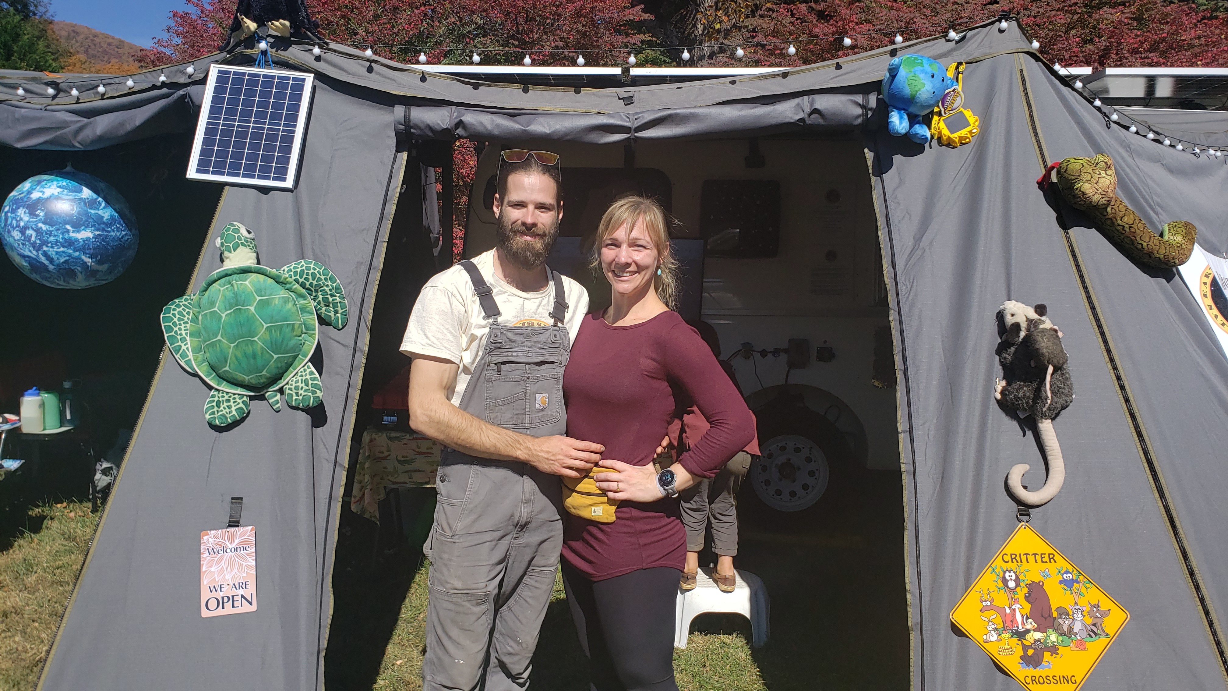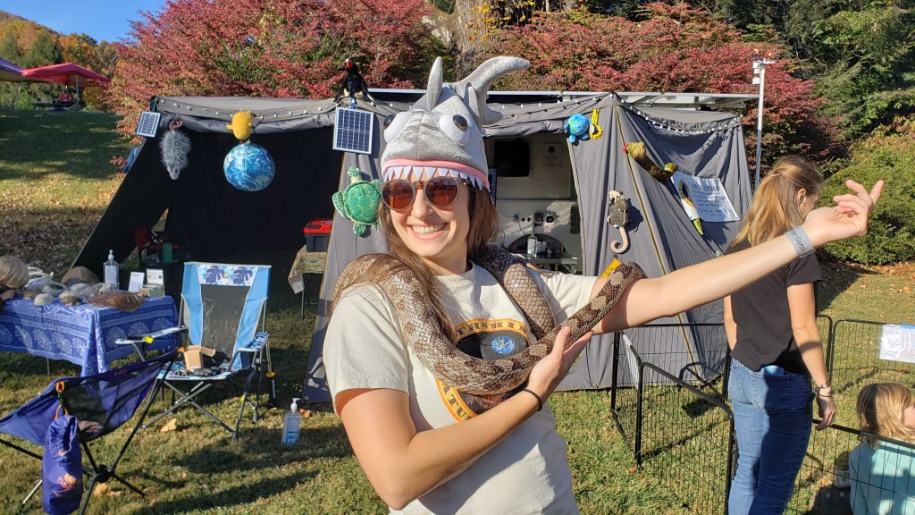 We are super happy to report that the PoD performed admirably well at the LEAF festival. It gave us a wonderful base of operations to bring wildlife and environmental conservation, nature, and science programming to thousands of festival-goers and it provided a warm, safe, and supportive environment for our education animals and ENP chief naturalist Steve when they slept in the PoD over the three nights of the festival. Even though nighttime temperatures dropped into the mid 20’s the PoD’s micro-scale heating system (a small, ceramic element, forced-air heater) kept the pod and its inhabitants at temperatures in the mid-’60s.