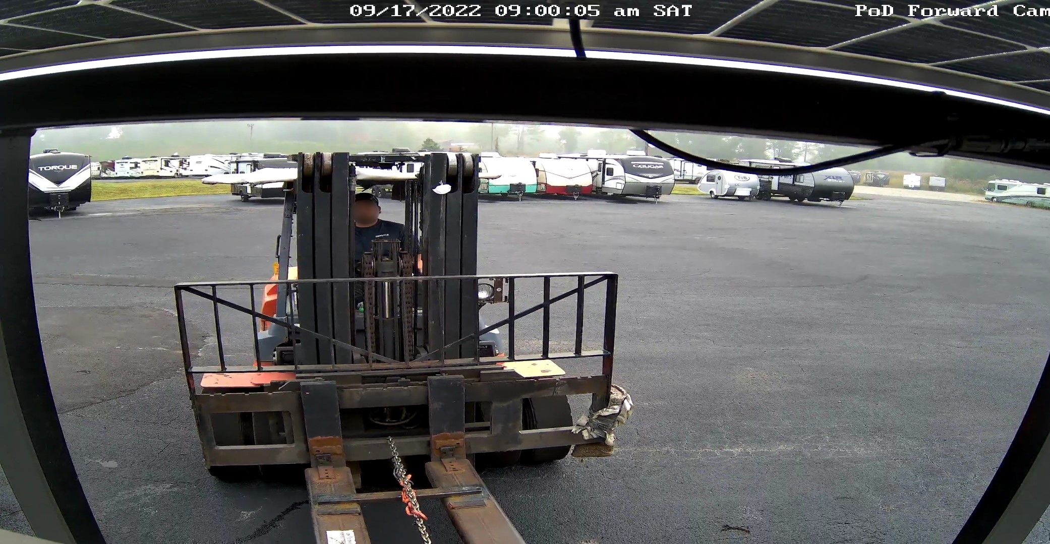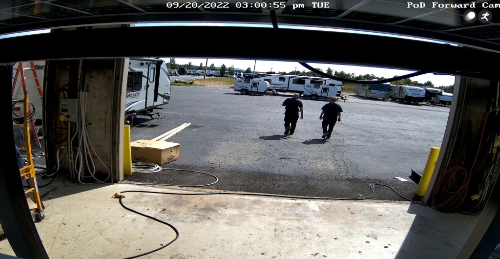 An interesting point of interest: the PoD was on-site at Camping World for several days while it was undergoing repairs. During this time the PoD was off-grid and running entirely on solar power so I decided to use this as an opportunity to test the PoD’s solar/battery power system, the new air conditioner, and its remote monitoring security system.
