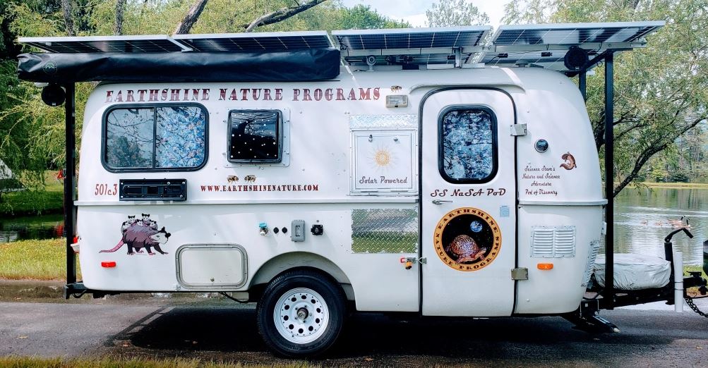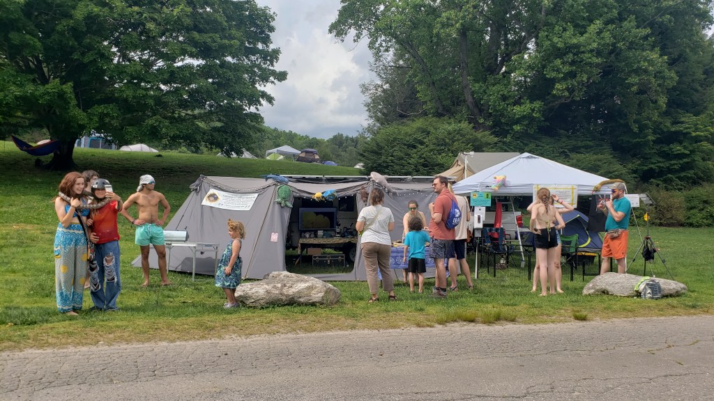 The next photo is from a Solar Energy Fair organized by the Transylvania Creation Care Fellowship. In attendance were three local solar installation companies, several EV drivers, and Steve and the SS NaSA PoD from ENP. Our goal was to spread the word about solar and EV technologies available to individuals and businesses as a way to help everyone become better stewards of our shared environmental life support system – nature.