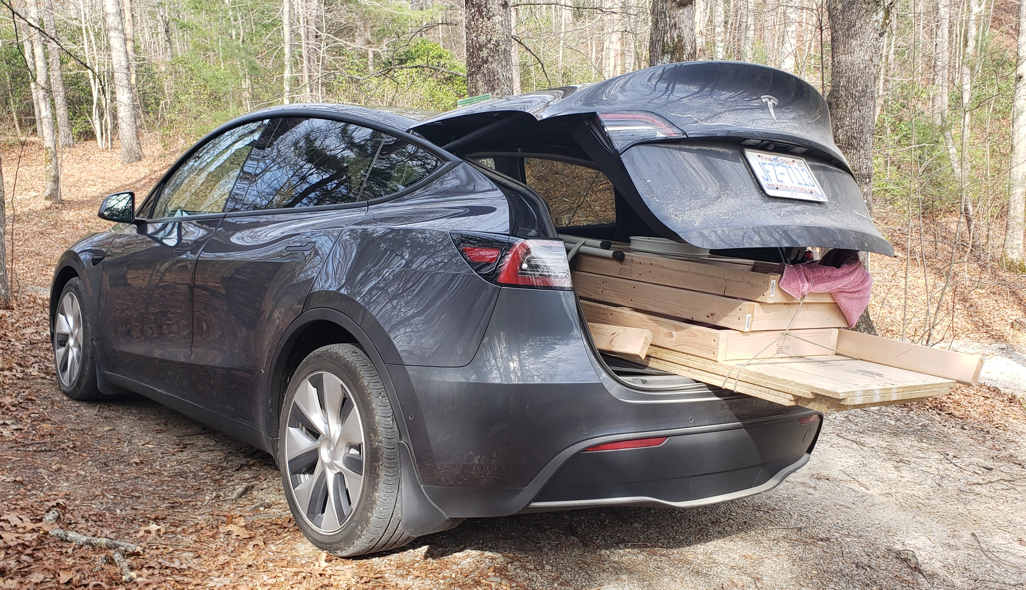 We used Jim’s Tesla Model Y as a “truck” to tote the shelving components to the classroom.
