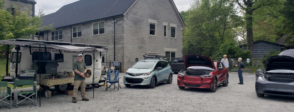 We have participated in several local renewable energy and Electric Vehicle (EV) community education programs and renewable energy education/demonstration events in our county of residence and in neighboring Henderson and Buncombe Counties with the Blue Ridge EV Club, Conserving Carolina, and the Transylvania Creation Care Fellowship. What follow are a few photos from the first half of the 2023 outreach programming season.